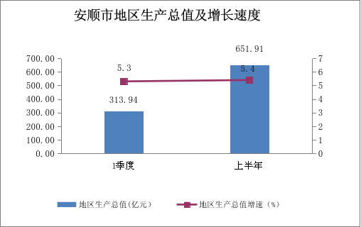 2025年上半年安顺市生产总值651.91亿元,比上年同期增长5.4%。其中,第一产业增加值86.78亿元,增长5.0%;第二产业增加值195.36亿元,增长8.7%;第三产业增加值369.76亿元,增长4.0%。